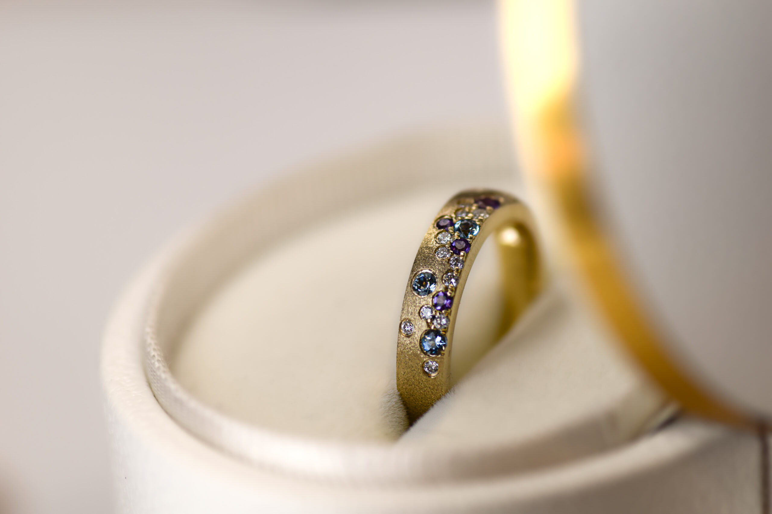 Colorful gems, playful textures, romantic undertones… it’s all part of the experience of creating and wearing a jewel that only exists because you imagined it! Stop in and see some past designs for inspiration, or just make an appointment to bring your dream design to life.