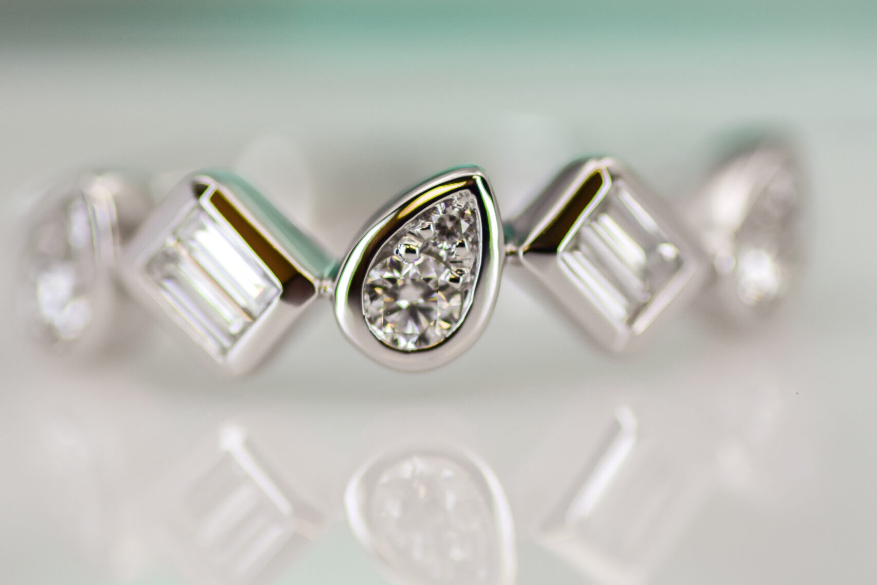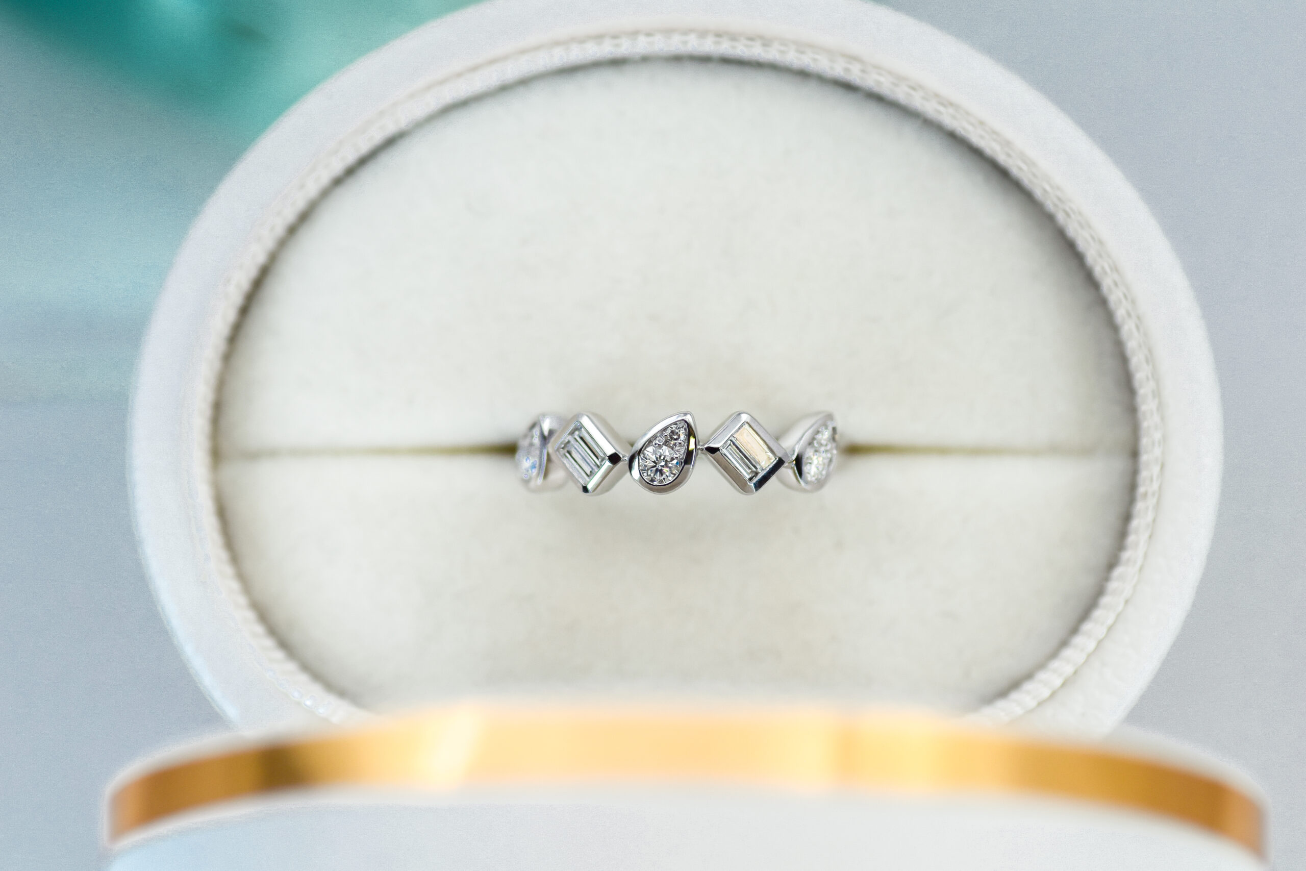Stone(s): 0.39 ctw diamonds, comprising of six rounds & 4 baguettes