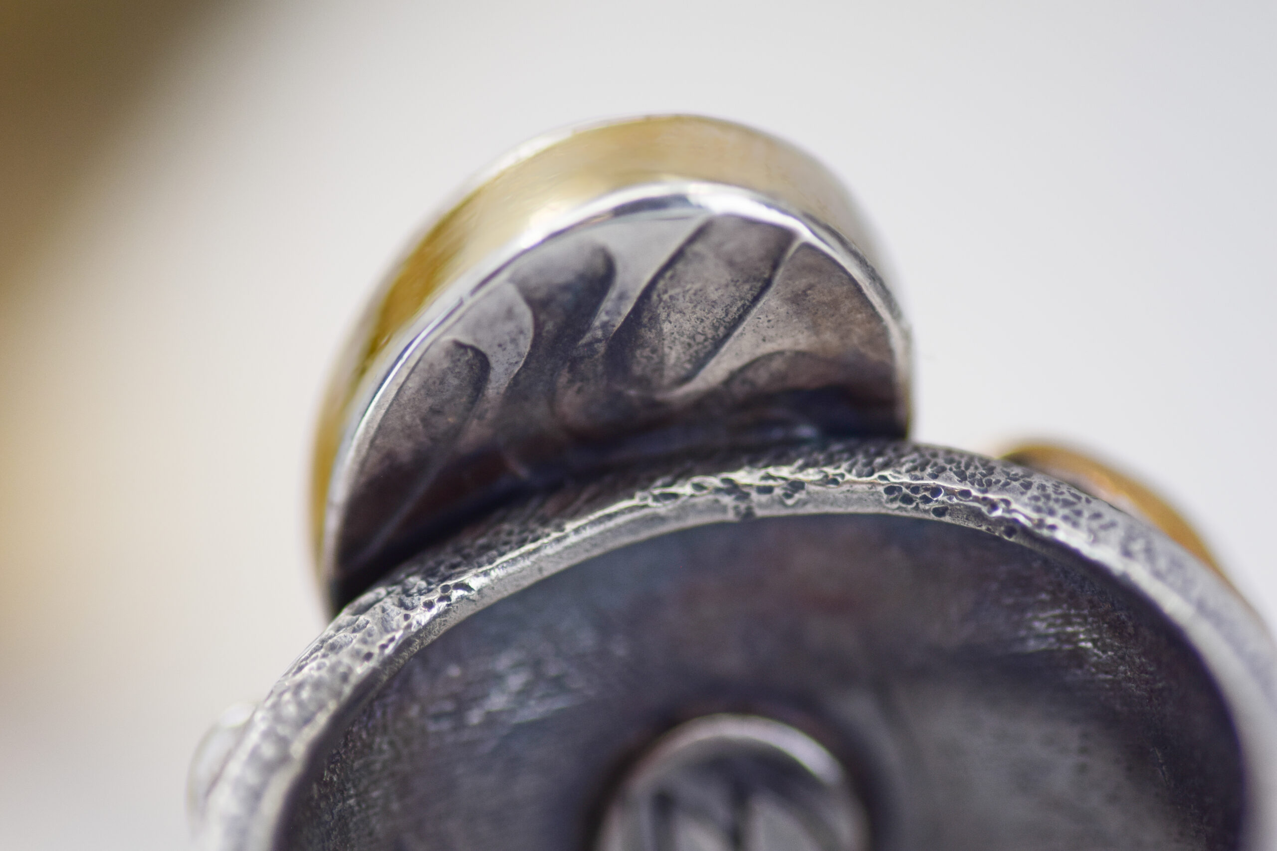 Metal: Sterling silver / 18k yellow gold settings / 22k yellow gold accents