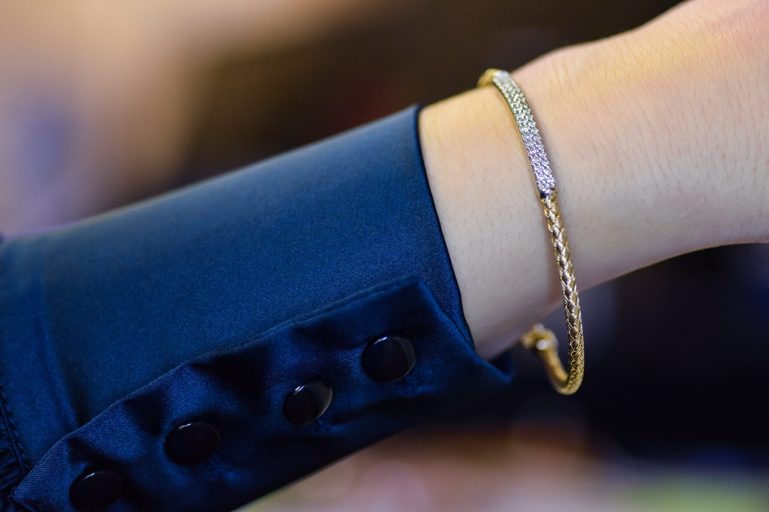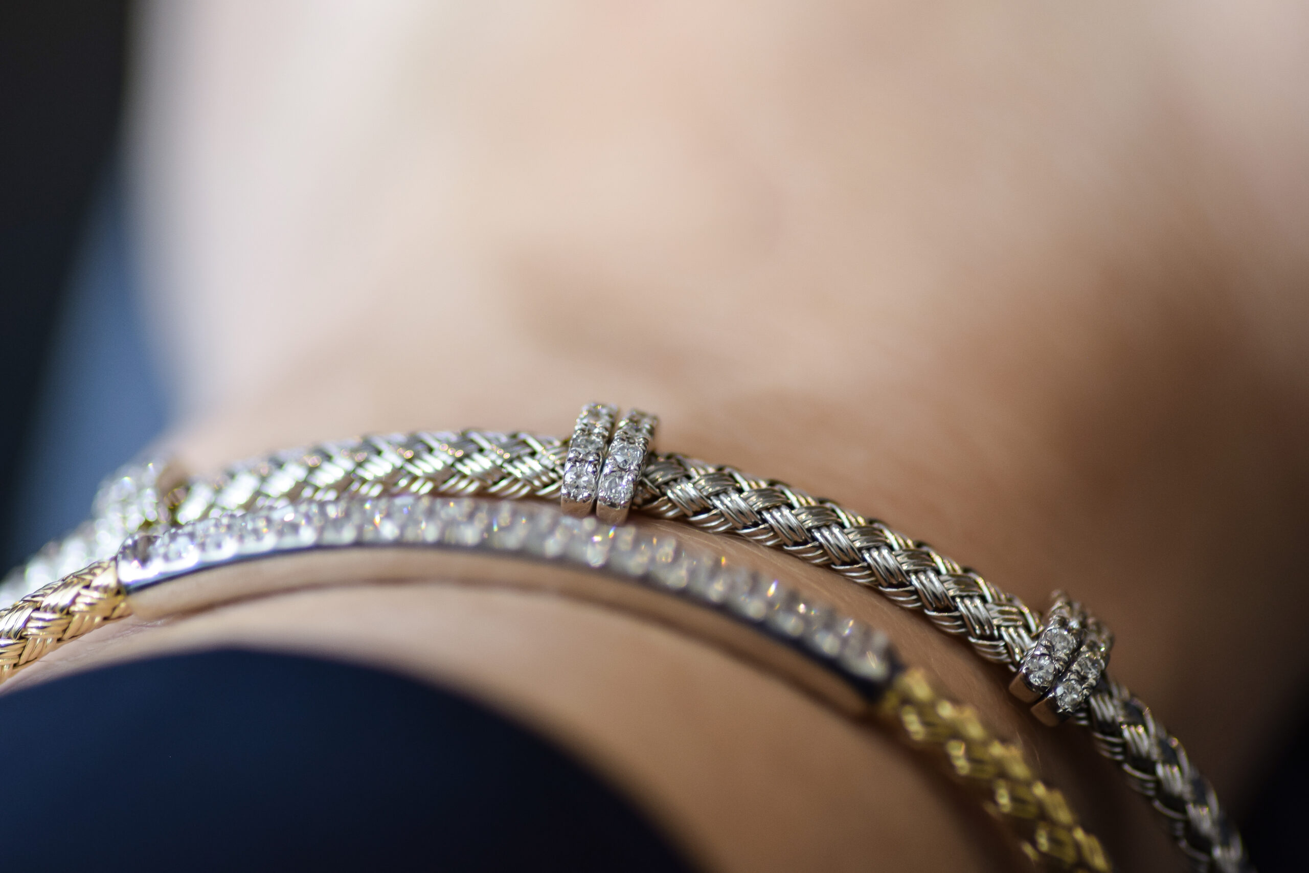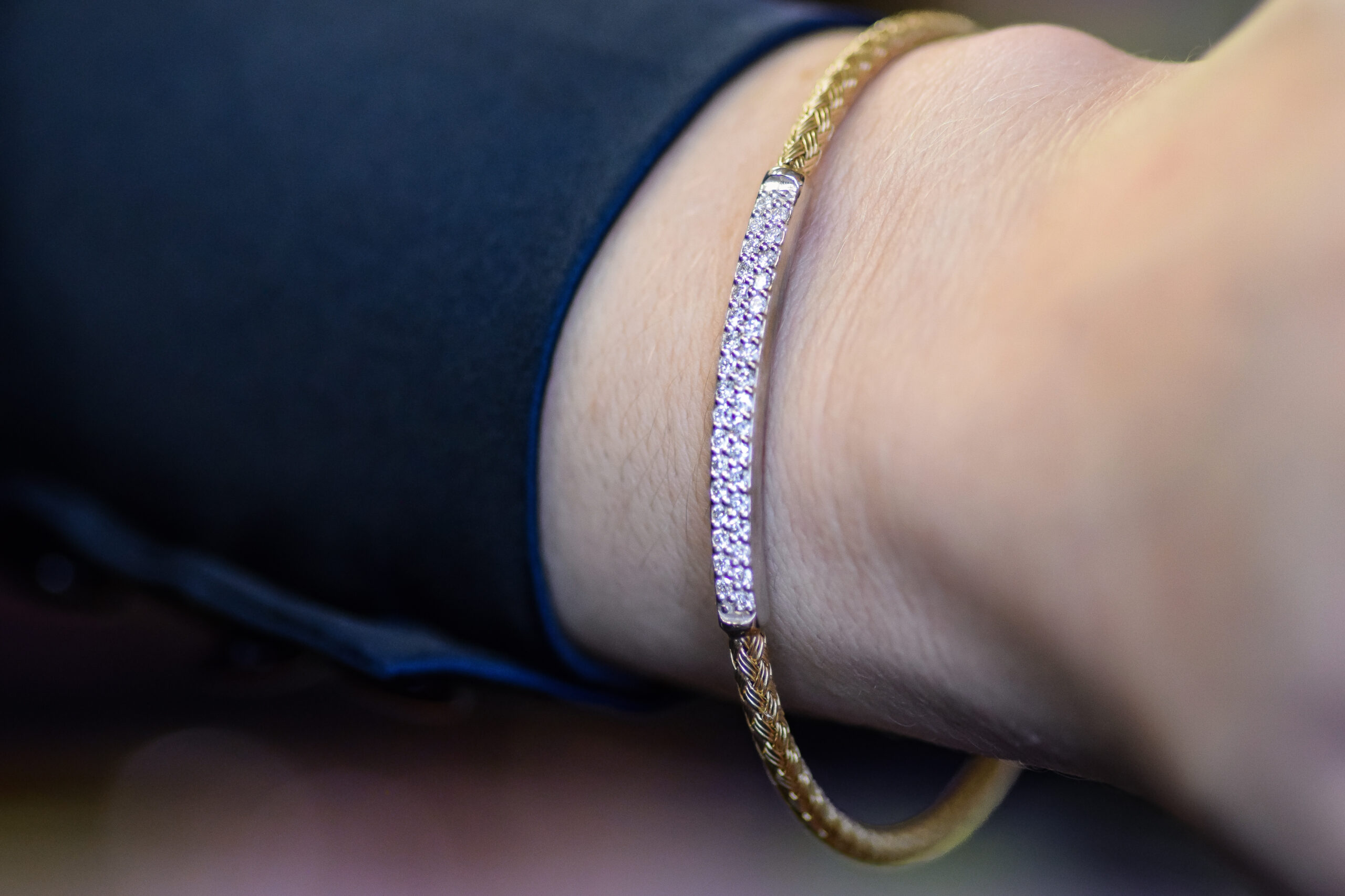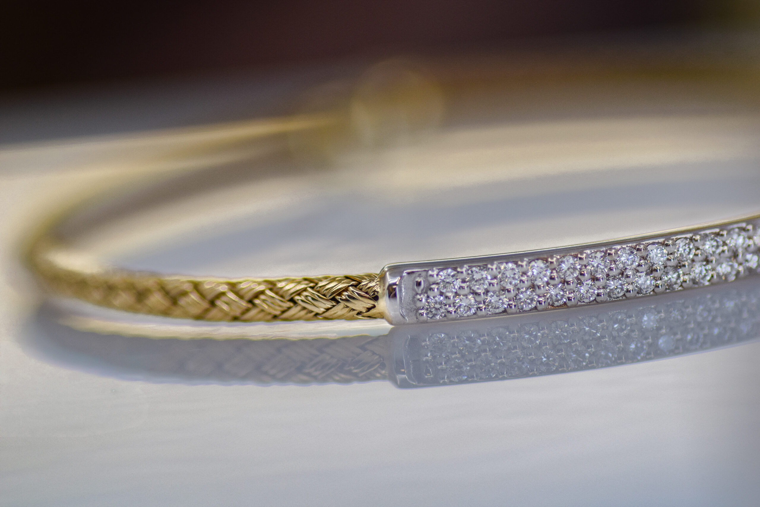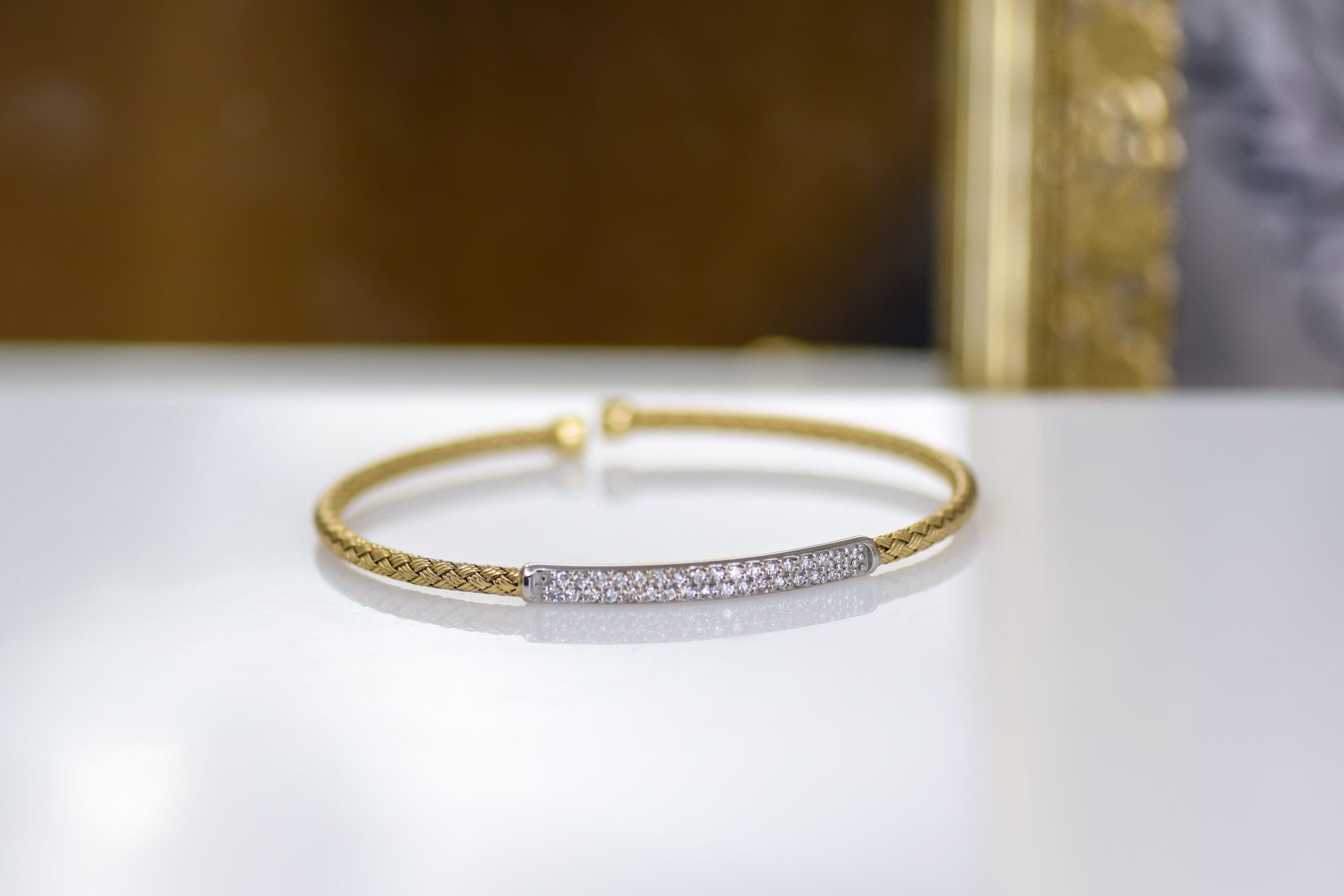 A statement to add to your delicate wrist stack: Elevate your elevated basics. Braided yellow gold and bright diamond together are always a photo-ready pair, and this bracelet ensures your personal photo-ready comfort.
