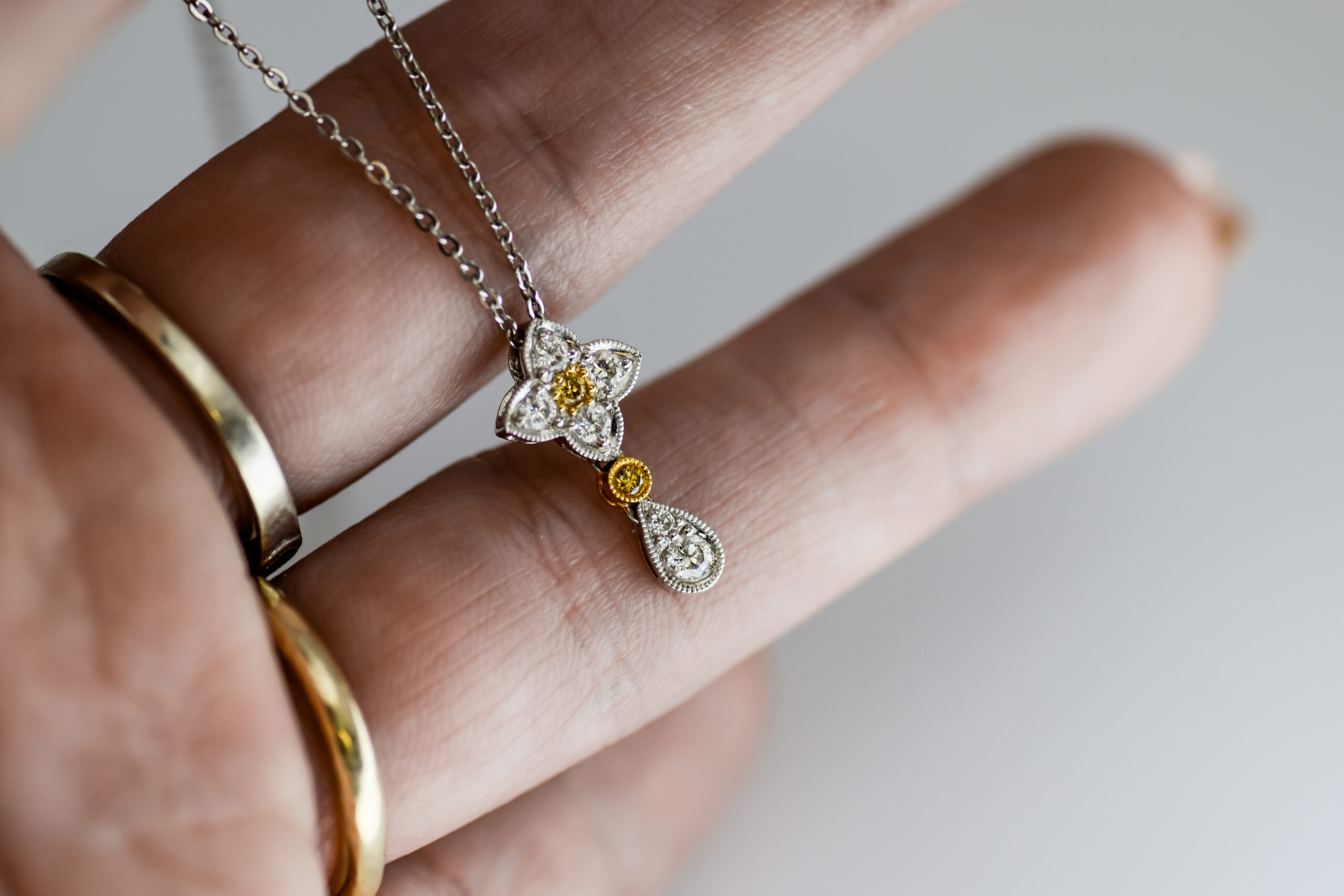 What else? Yellow and white diamonds, milgrain detail, and the ever-present featherweight of history. And flowers, blooming.