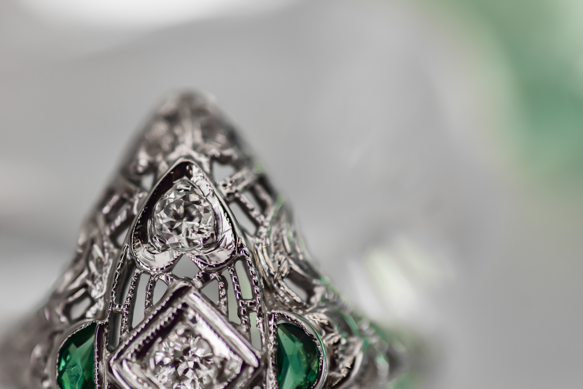 Stone(s): two half-moon emeralds / three round diamonds