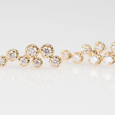 Sterling silver and 14k yellow gold. French hooks. Emeralds and diamonds.