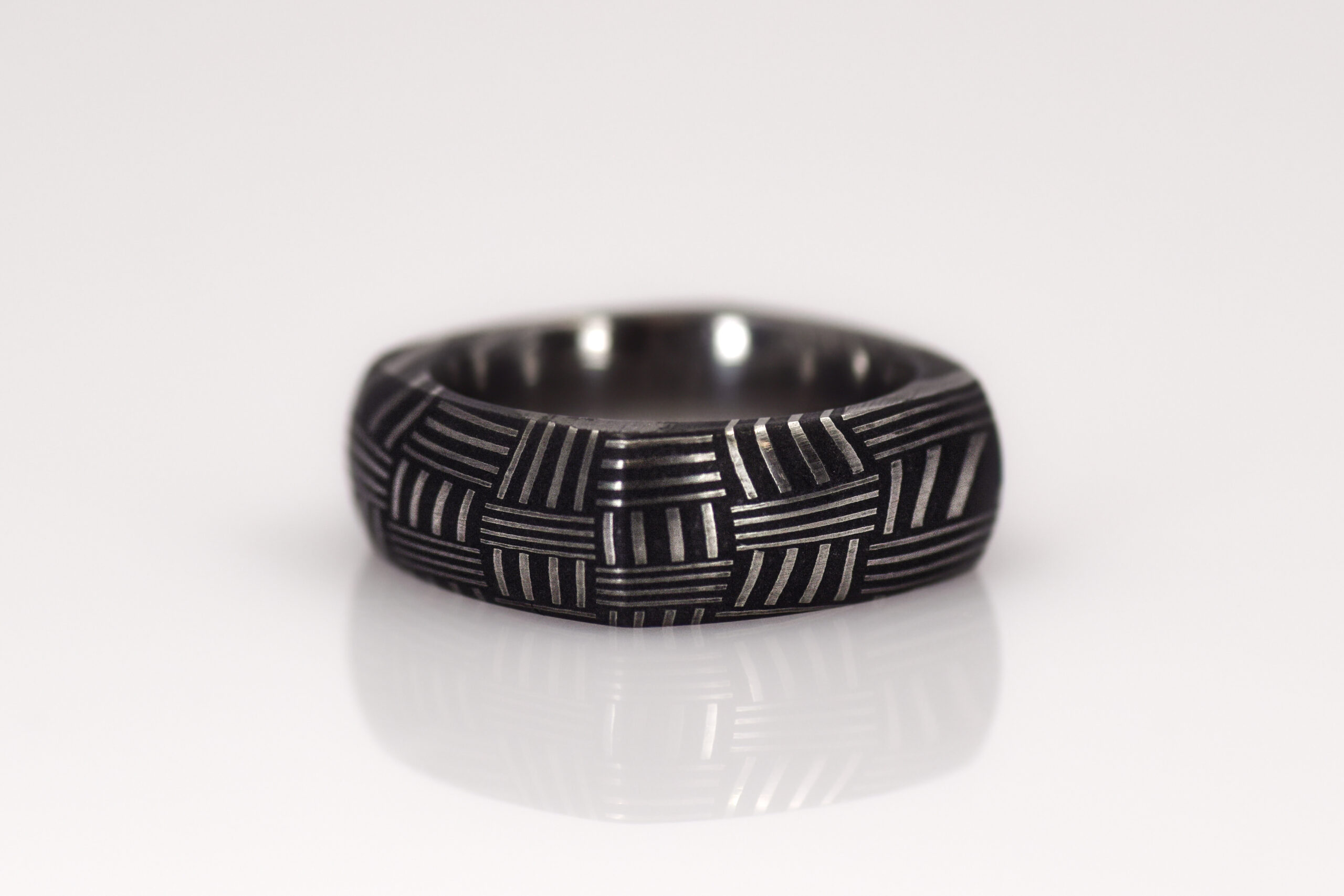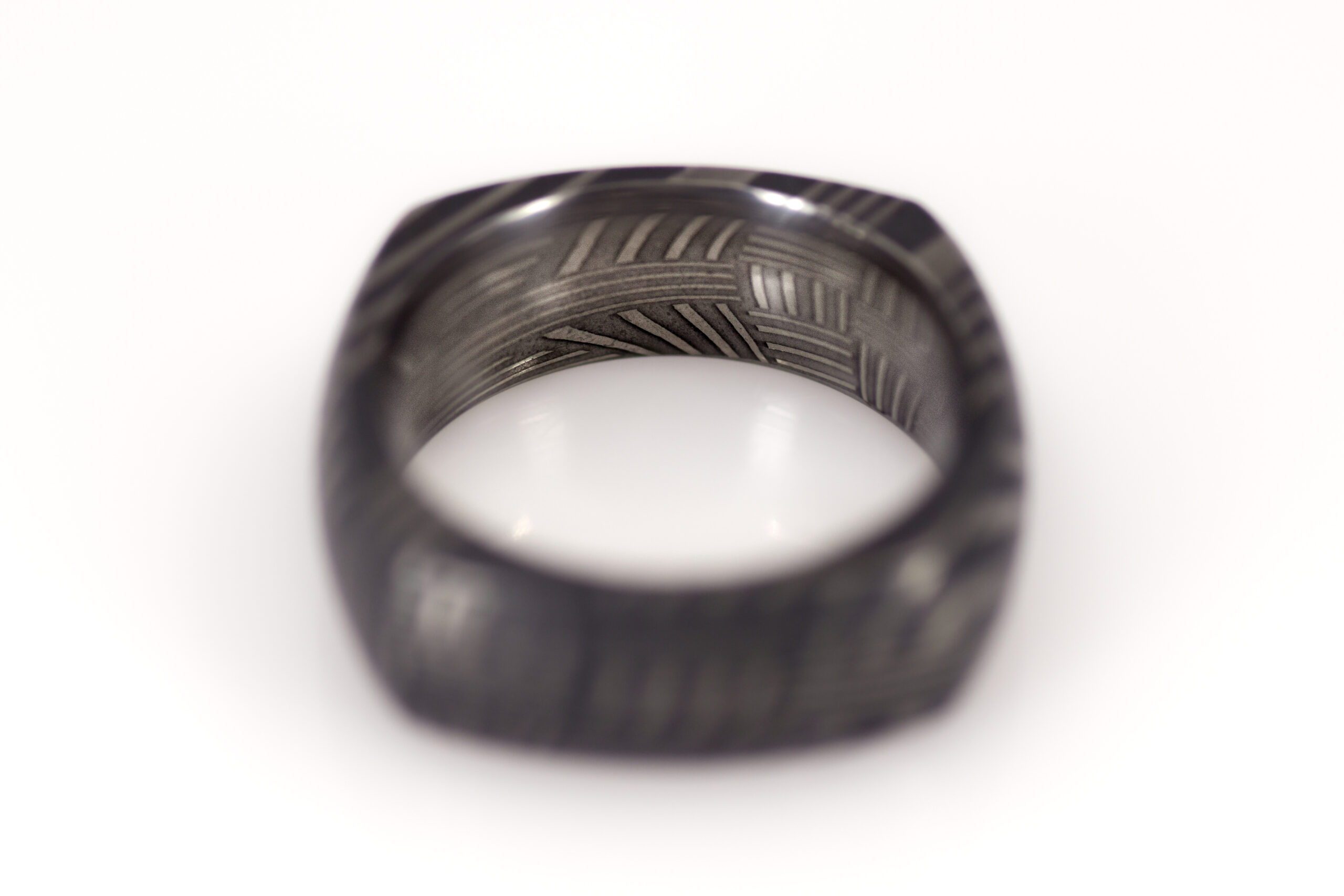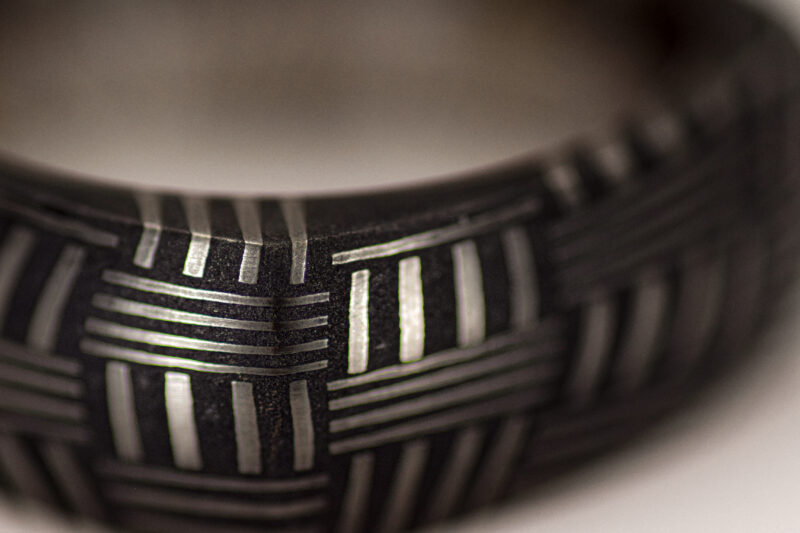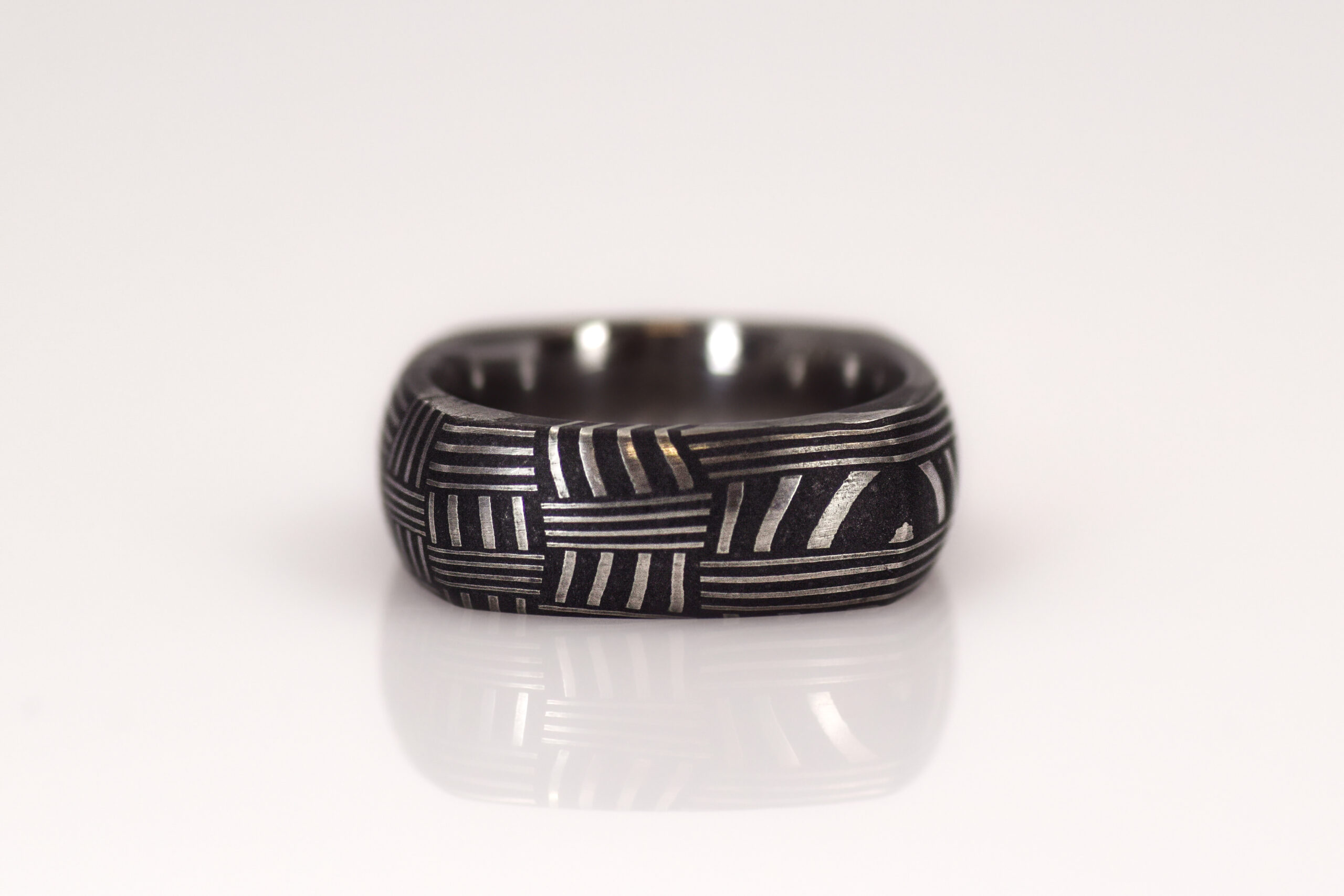 Precise basket-weaves are among the most beautiful pattern-welds, and to shape a circle through the solid square to make a ring…well, the results speak for themselves.
