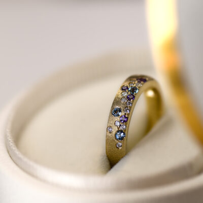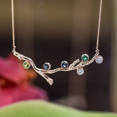 Colorful gems, playful textures, romantic undertones… it’s all part of the experience of creating and wearing a jewel that only exists because you imagined it! Stop in and see some past designs for inspiration, or just make an appointment to bring your dream design to life.